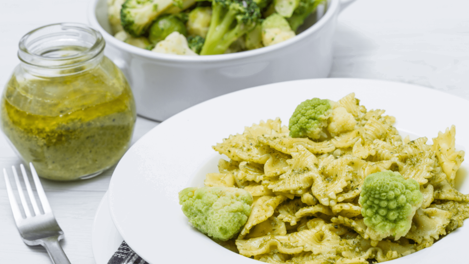 Den Brokkoli in große Röschen zerteilen, 10 Minuten in Salzwasser kochen, abgießen und in ein hohes Gefäß geben. Frischen Basilikum abzupfen und eine Handvoll dazu geben. Die Knoblauchzehe pressen und mit den restlichen Zutaten zugeben. Dann alles in dem Gefäß mit einem Pürierstab cremig schlagen. Mit Salz und Pfeffer abschmecken.